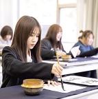 Featuring Seal Engraving and Carved LetteringIn calligraphy classes and seminars, students explore a variety of calligraphy styles and also work on ink painting, seal engraving, and carved lettering. Graduation works are exhibited at a venue in Tatsuno Town, where they are open to the public.