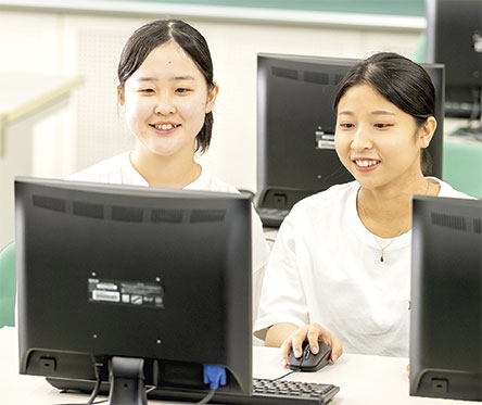In today’s information-driven society, the ability to effectively use PCs and other information technologies is essential. At our college, students start by learning the basics of ICT (Information and Communication Technology) and progressively enhance their presentation skills using computers.