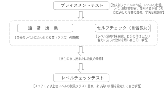 In order to strengthen students' basic Japanese language skills that are essential for the program, Japanese Expression I–III courses are offered using a leveled class system. Students will take a mid-semester exam and may move between classes, with 6 classes running simultaneously. Similarly, English courses are offered at six levels under the course name Basic English to boost English proficiency.